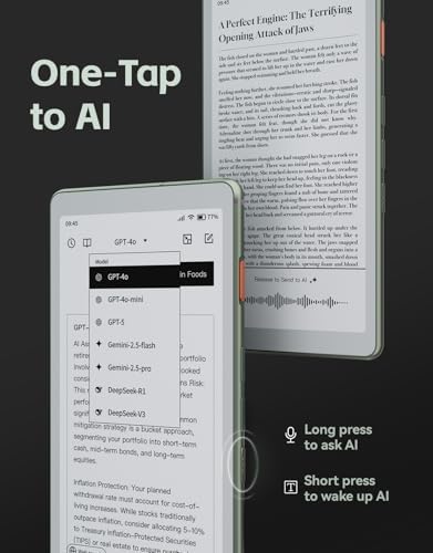 Experience personalized reading like never before with AI integration that adapts to your preferences, offering recommendations and enhancing your reading experience. The adjustable front light allows you to read comfortably in any lighting condition, whether you’re in bright sunlight or a dimly lit room.